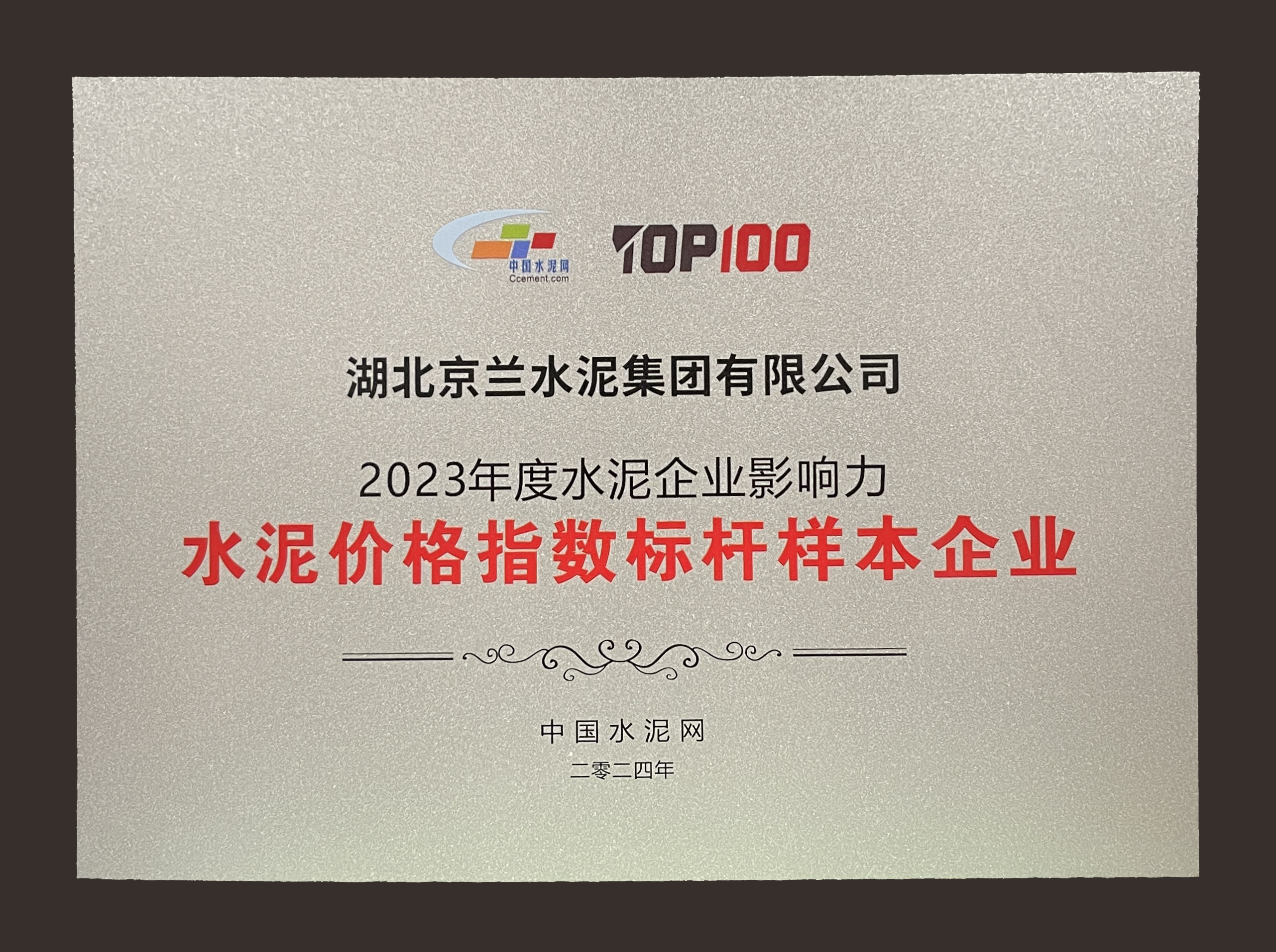 最后,會議舉行行業(yè)TOP100的頒獎典禮,湖北京蘭水泥集團有限公司喜獲“2023年度水泥企業(yè)影響力-水泥價格指數(shù)標桿樣本企業(yè)”及“2023年度水泥企業(yè)影響力-知名品牌企業(yè)”兩項大獎。